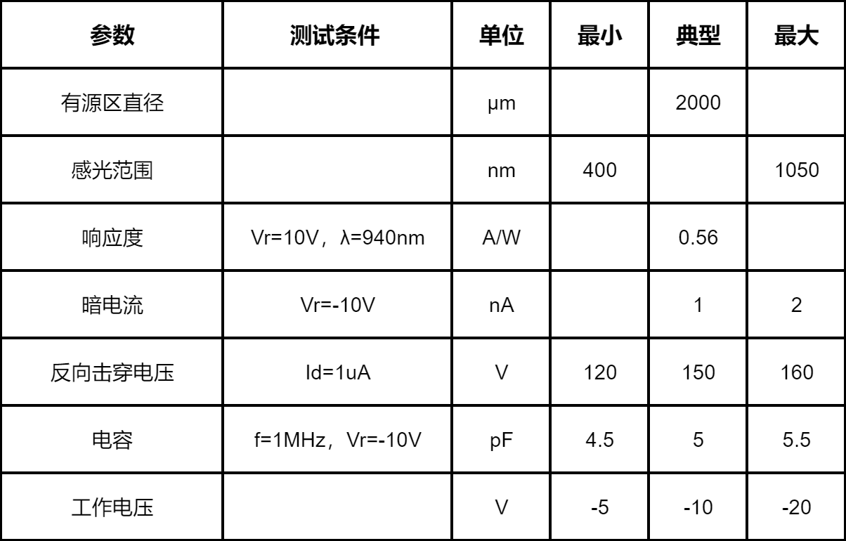 产品中心 首页 产品中心 智能传感 硅光电二极管芯片 Si PIN是一款光电二极管芯片,工作波长优化在940nm,高阻衬底,光敏面直径2000um。 产品特点 高灵敏度 高线性度 低暗电流 应用领域 工业探测 健康监控 科研应用 产品性能指标