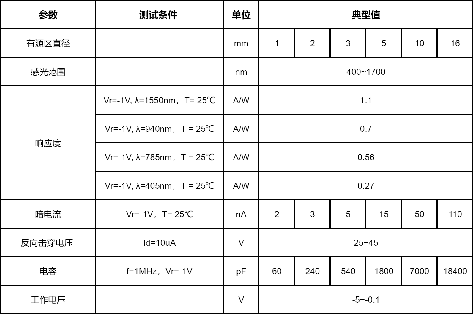 超大光敏面 InGaAs PD光电二极管芯片系列(拓展)
