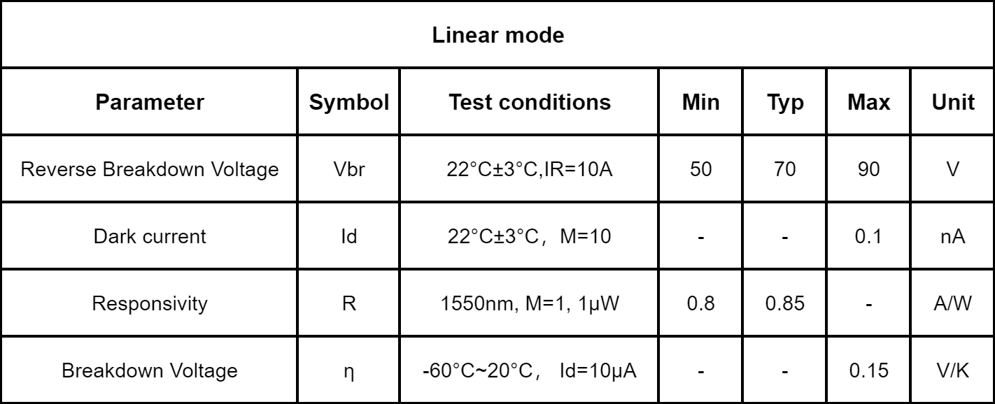 The InGaAs Single-Photon Avalanche Diode (SPAD) is a specialized device designed for single-photon detection in the short-wave near-infrared (NIR) range. It meets the technical requirements for high-efficiency and low-noise single-photon detection in applications such as quantum secure communication and weak light detection, enabling precise sensing of single photons within the 0.9–1.7 μm wavelength band.